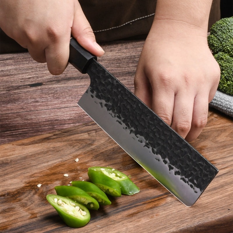 Le manche en bois haut de gamme, sculpté pour offrir une prise en main parfaite, ajoute une touche de luxe et de confort. Sa conception ergonomique assure un équilibre optimal, réduisant la fatigue lors des longues sessions culinaires et permettant une maîtrise totale de chaque mouvement.