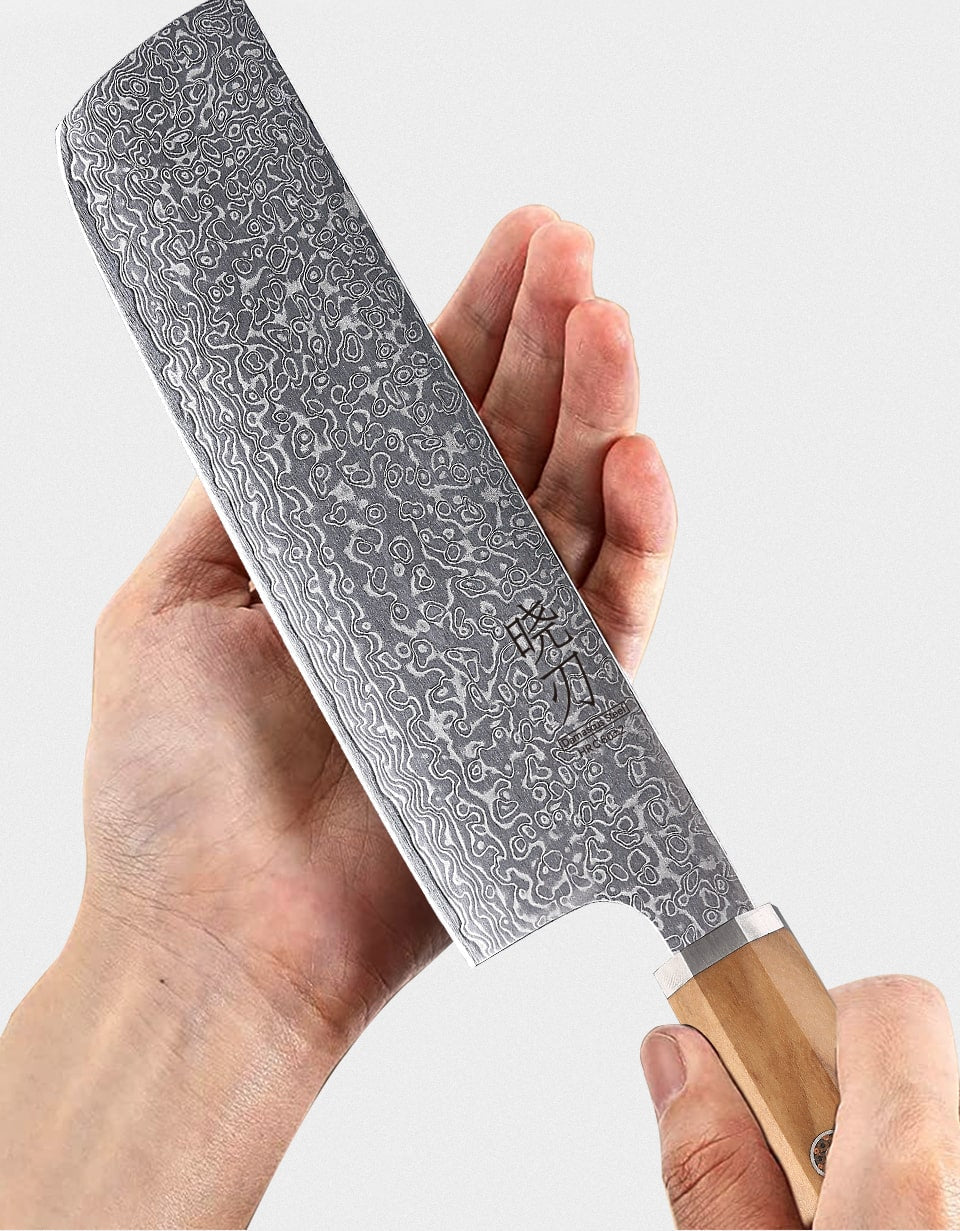 Avec sa lame d'exception composée de 67 couches d'acier Damas, ce Nakiri offre une précision de coupe inégalée et une robustesse qui surpasse toutes les attentes. Chaque tranche et chaque découpe se fait en douceur, transformant la préparation de légumes en un geste précis et rapide.