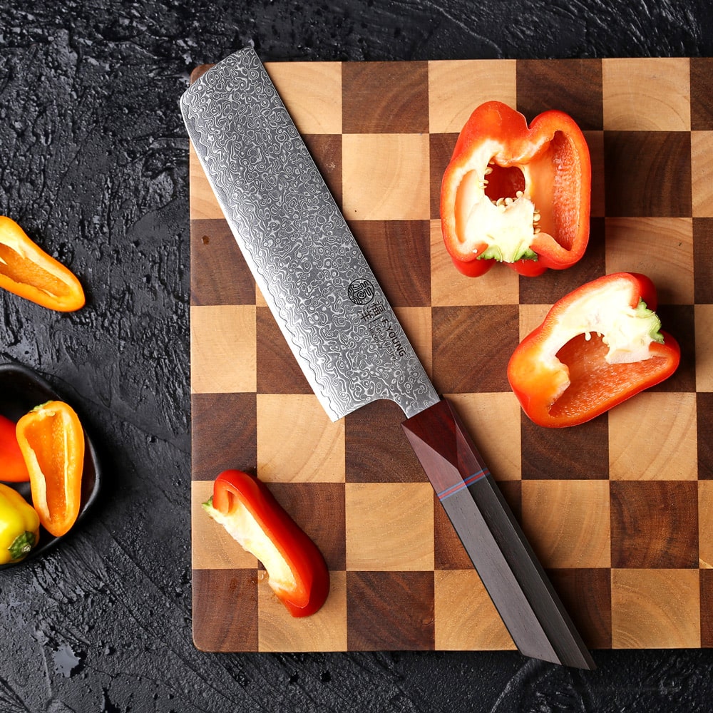Découvrez l'équilibre parfait entre artisanat d'exception et performance de précision avec notre Couteau Nakiri Japonais en acier Damas. Conçu pour les chefs les plus exigeants, ce bijou de 33 cm élève chaque geste en cuisine à un tout autre niveau.