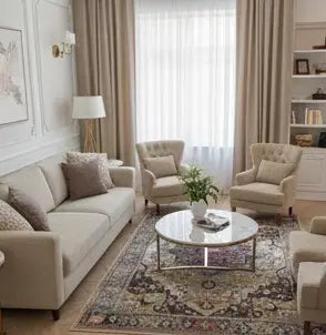 Il est conseillé de mesurer votre pièce ou votre zone de placement. Pour un salon, par exemple, un tapis doit idéalement passer sous les pieds avant du canapé. Dans une chambre, un grand tapis peut dépasser de chaque côté du lit pour un rendu harmonieux.
